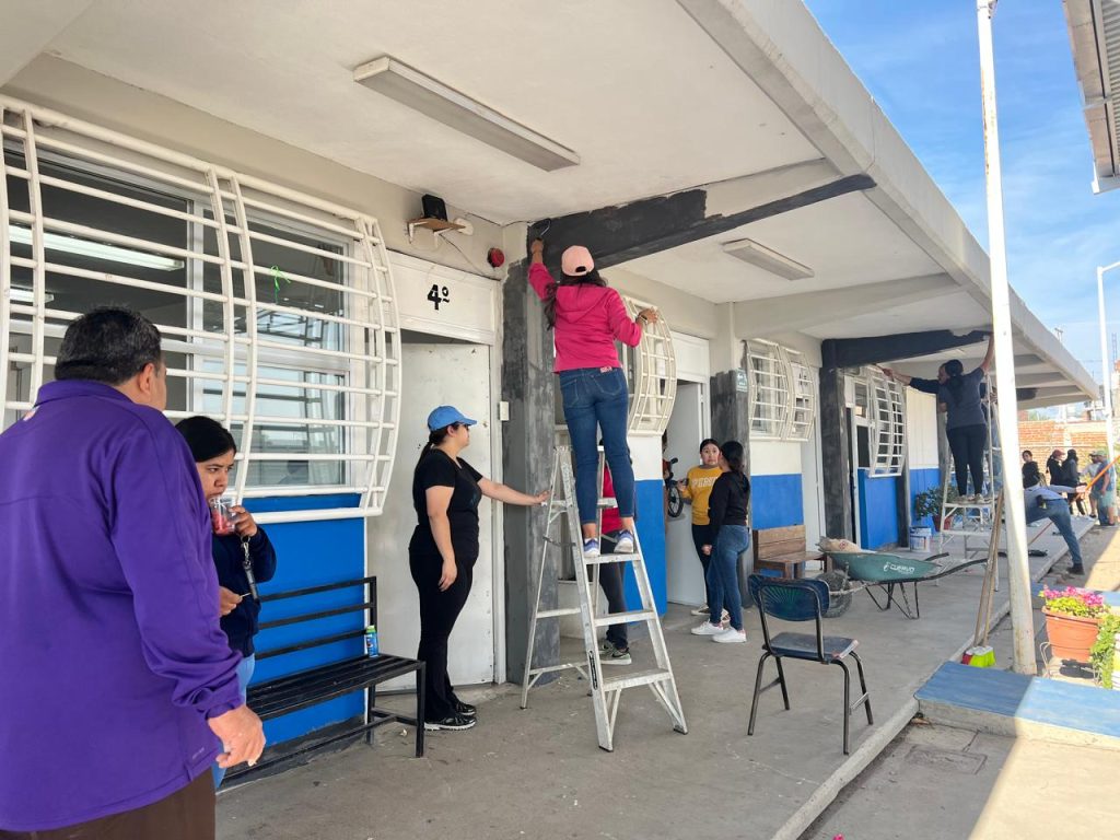 Durante esta actividad, se realizaron trabajos de pintura en los salones de clase, tanto en su interior como en el exterior, con el objetivo de dignificar los espacios educativos y brindar a las y los estudiantes un entorno más adecuado para su desarrollo académico.
